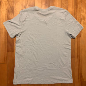 Frank and Oak tee shirt, in light blue made with 100% Organic cotton T, responsible cotton grown and harvested with sustainable methods, made with recycled polyester sourced from discarded plastic bottles. Wash Cold, do not bleach, tumble dry low, iron low heat.