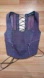 This vibrant purple corset top features a sleeveless design and a trendy crop cut, perfect for a stylish and modern look. The cut-out lace up details add a unique touch, making it a standout piece in any wardrobe. Ideal for casual outings or a night out, this top combines comfort with a chic aesthetic. Upcycled from discarded fabric. Sourced and reworked in Vancouver, Canada.