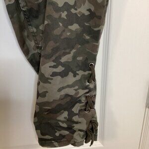 Frankie & Stella Jeaniologie Women's Capri Camo Print Pants Lace-up Legs Pockets Army Colors