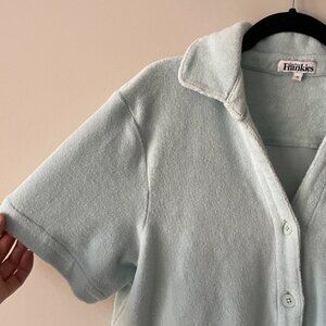 Frankies Bikinis Coco Terry Button Up Top Short Sleeves Collared Sky Blue Medium