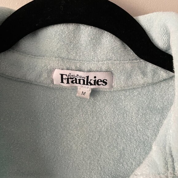Frankies Bikinis Coco Terry Button Up Top Short Sleeves Collared Sky Blue Medium : Used and in good used condition