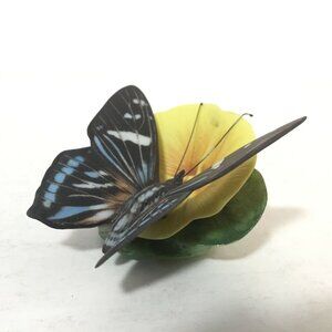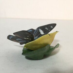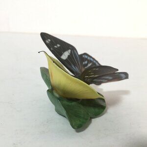 Franklin Mint Butterflies of the World: These are discontinued from 1985. Mangrove Skipper on a water poppy flower. It has the marking FR 85 and a small sticker on the underside that says Crafted in Malaysia. There is a number 7 on it underneath as well. It is approx. 1.5 inches high. It has a soft black mark at the top of the flower. I have not tried to remove it. It is a very beautifully hand painted piece.