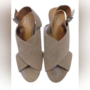 Franko Sarto Fawn Colored Suede Crossover Straps Open Toe Wedge Sandals Size 9.5