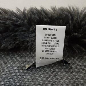 - Color is gray; the knit is a gray/light gray blend; the faux fur collar is dark gray