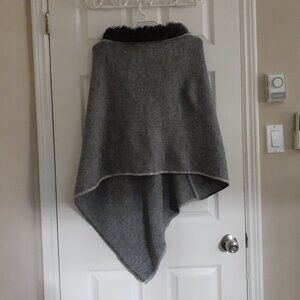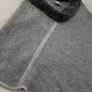 Fratelli Talli Gray Faux Fur Collar Wool Alpaca Knit Poncho