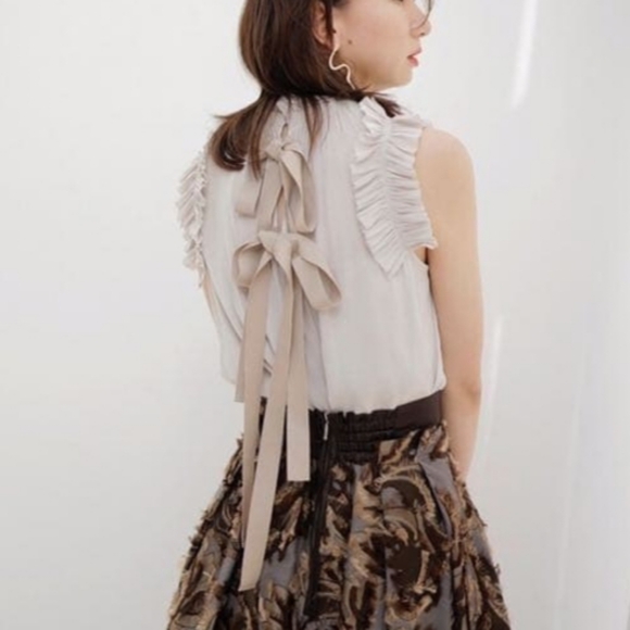 Fray I.D. Gathered Ruffle Back Ribbon Blouse