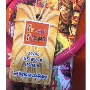 Freak Flops flip flops slippers sandals with flowers and pineapples new with tags. Vibrant colourful pattern of fruit which is very trendy this year, water proof, comfortable foot bed, cute girly summery style. Marked size US 8/9, the insole is 10’’ so I’d say they’d fit sizes 8, 8.5 and 9, listed in all three sizes for exposure. This item comes from a smoke free, pets friendly home. Recycled bags/box used when possible. Please, let me know if you'd like any additional info. Thanks for watching!