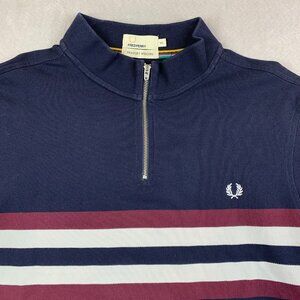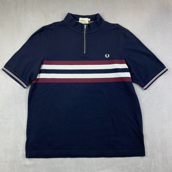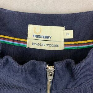 Fred Perry Bradley Wiggins Mens Shirt 2XL (Fits XL) Blue Striped Polo Pique Zip