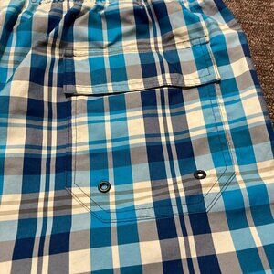 Fred Perry Swim Short Mens Large Blue Plaid Trunks Lined Beach Pockets