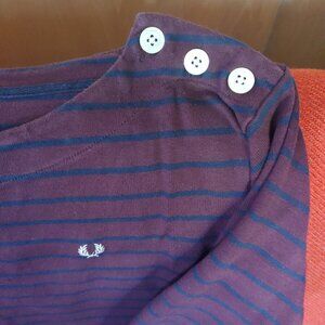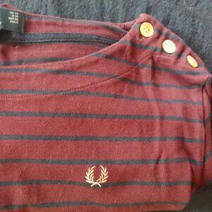 Fred Perry Tunic Dress Stripes Boat Neck Sz 8 burgundy & navy gold logo
