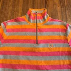 Think ahead to cold weather with Fred Perry long sleeved t neck in 100%cotton for comfort. Wear under outdoor gear or on its own for day or weekend wear. Size medium in excellent used condition with no wear, stains or damage detected. Fabulous fun colours to lift you out of the winter blahs. Neck has operational zip to wear as turtle neck or open as V neck. Super travel piece! Add a few accompanying pieces from Our Closet (some suggestions shown all listed and priced separately), make a bundle, save a bundle. Have fun getting Fresh with Lemon Squeezy Shop🍋