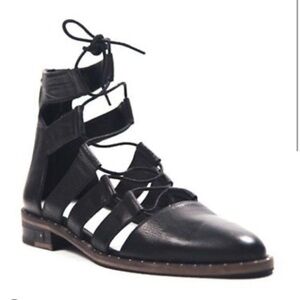 Fit true to size. These are tagged as Anthropologie for exposure purposes only. The brand is Freda Salvador.