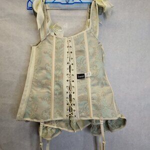 Fredericks of Hollywood Corset Bustier SZ Large Lace Up Jacquard Steampunk Fairy