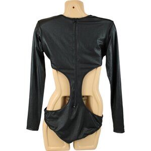 Frederick's of Hollywood Oil Slick Cut Out Bodysuit Black Small Long Sleeve T82