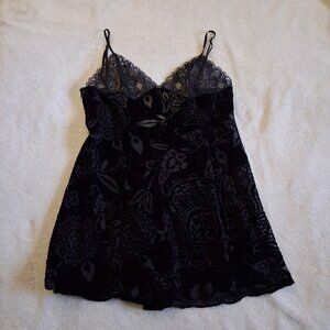 Frederick's of Hollywood Women's M Black Burnout Velvet Lace Y2K Mini Chemise