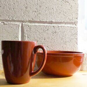 🎁Free ADD-ON/ One person ceramic glazed pottery bowl and mug set in red