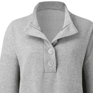 Free Assembly Oversized Sweatshirt Women Loose Simple Buttons V Neck Top Casual