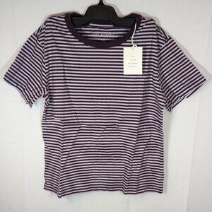 New with tag Free Assembly Women's Short Sleeve Crop Relaxed Fit Stripe Organic Cotton Winter Bloom Stripe (White and Purple) Box Tee