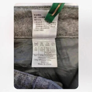 Gray in color, these adorable capri pants are 53% wool. They feature two front pockets and a standard button and zipper closure with belt loops. The two back pockets are faux. These bottoms are gathered at back of knees and would pair well with tights. Perfect winter garmet.