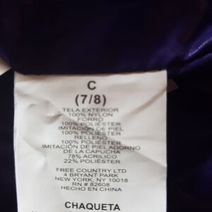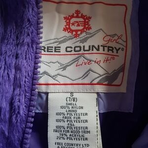 Free Country girls size 7/8 hooded winter jacket. The hood is faux fur trim, the hood is removable, there are 2 zippers in the front.