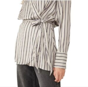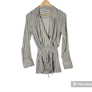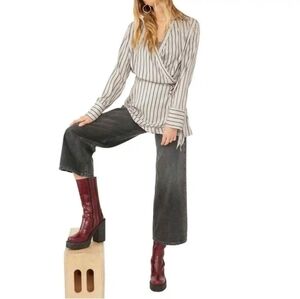 Free PEOPLE Arlo Striped Plunging Neckline Long Sleeve Wrap Blouse Size XS