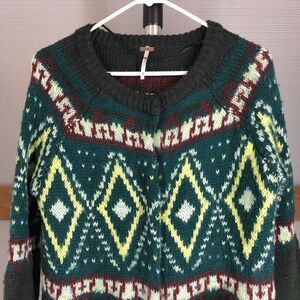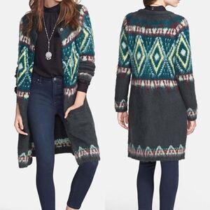 Free PEOPLE Frosted Fair Isle Mohair Wool Snap Button Midi Knit Cardigan XS