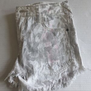 Free PEOPLE ICING WASH CUTOFF WHITE JEANS CAMO SHORTS MID-RISE SIZE 25