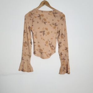 Layer Me Henley in lust peach combo with ribbed design and bell-sleeves.