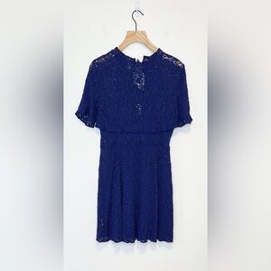 Royal blue lace dress with an A line skirt. Dress is fully lace with no lining .