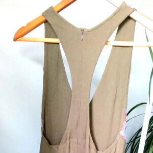 Free People Amalfi Embroidered Sleeveless Jumpsuit in Olive Green US 2