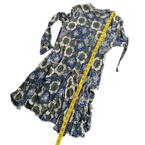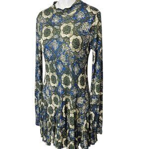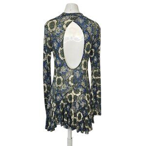 Free People Anabelle Printed Tunic in Cobalt Combo, Mock Neck, Open Back, Size S
