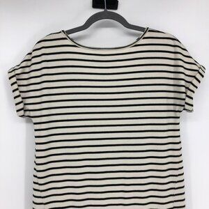 Free People Beach Striped ShortSleeve RoundNeck Top w Black Ruffle Peplum Hem XS