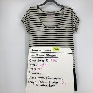 Free People Beach Striped ShortSleeve RoundNeck Top w Black Ruffle Peplum Hem XS