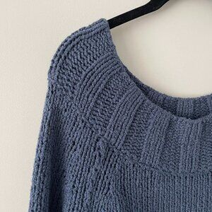Free People Beachy Off Shoulder Slouchy Cable-Knit Pullover Sweater Blue XS