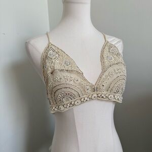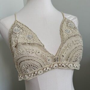 Free People Beaded Embroidered Bralette – Ivory Boho Festival Top