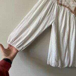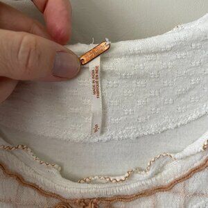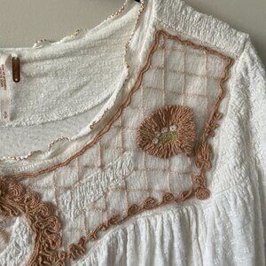 Free People Begonia Tee Embroidered Blouse Top White Brown Small : Used and in good used condition