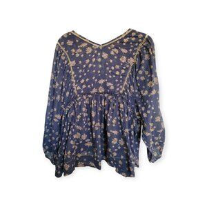Free People Black Gold Sunflower Pattern Never a Dull Moment Peasant Blouse S