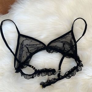 Sweet yet sultry, this essential bra is featured in a classic triangle silhouette with a sheer Swiss-dot mesh pattern and ruffle trim for the perfect finishing touch.