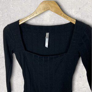 Free People Black Square Neck Ribbed Knit Bodysuit Revolve Size XS Beside Me Rib