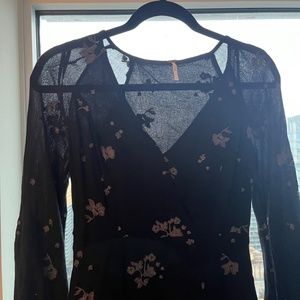 Free People Black/Lilac Jasmine Embroidery Kimono Fit/Flare Dress