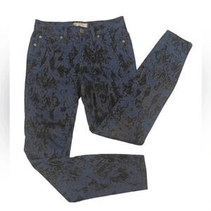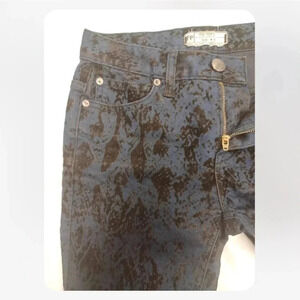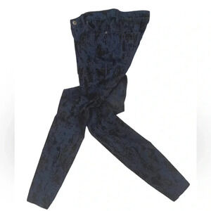 Free People Blue Black Velvet Snake Print Accent Skinny Jeans Size 25