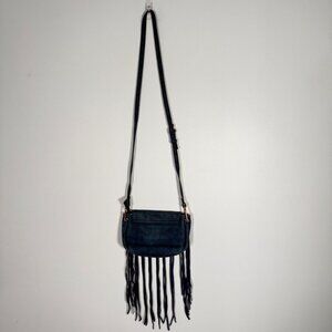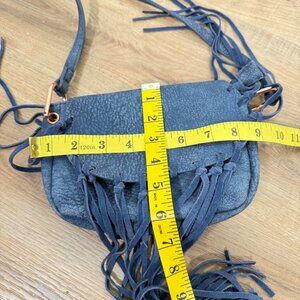 Free People Blue Faux Leather Fringe Bag Festival Bohemian