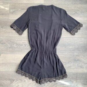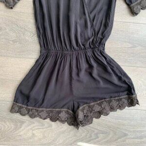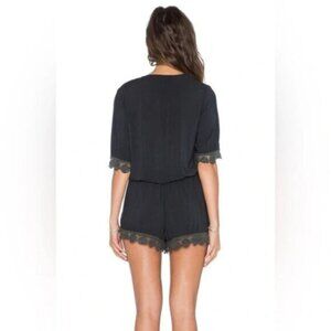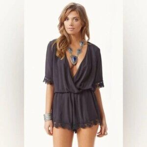 Revolve Blue Life Soft Black 3/4 Length Sleeve Surplice Crochet Lace Romper.