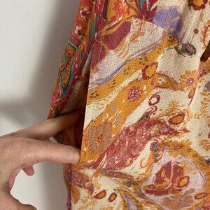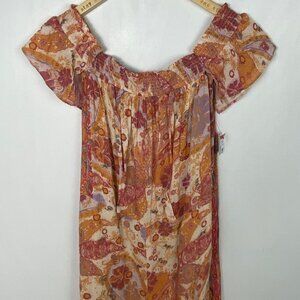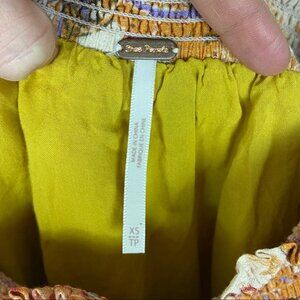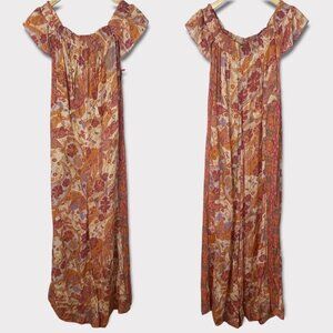 Free People Bohemian Wide Leg Orange Yellow Floral Jumpsuit Carmen Smock XS Boho