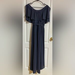 Free People Boho Embroidered Flowy Wrap Tie V-Neck Flutter Sleeve Wedding Guest Formal Party Fancy Cute Navy Blue Maxi Dress