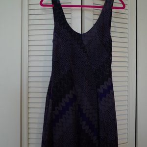 Navy Blue/ Blue woven mini dress that flares out. Great quality woven material; is lined with a type of slip. Like new condition.