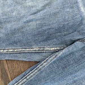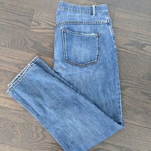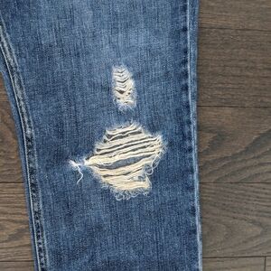 Straight leg distressed boyfriend jeans from Free People! They are loose fitting, straight leg and super soft. There is some wear on the inseam (pictured), multi button closure and pockets.