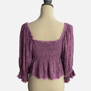 Free People Brittnee Print Smocked Peplum Top Purple Small Floral Smocked