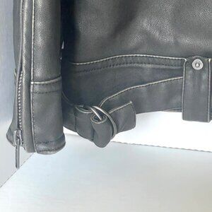 Free People Buckle Up Vegan Leather Moto Jacket Black Oversized Zip