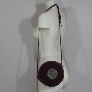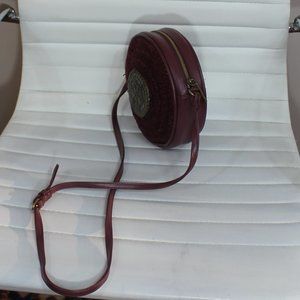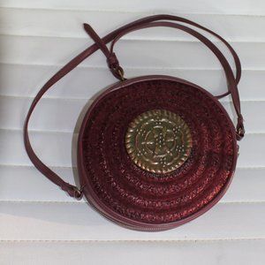 Free People Burgundy Round Shoulder Women Handbag Metal Ornaments Vegan Leathet